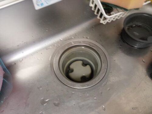本日はシンクからの漏水修理についてご紹介致します。 流し台で洗い物をした後に、流し台の収納に水が落ちてくるので直して欲しいとのご相談です。 早速お伺いし調査しました。 一般的なステンレス流し台です。 流し台の漏水はこのトラップと呼ばれる排水口…